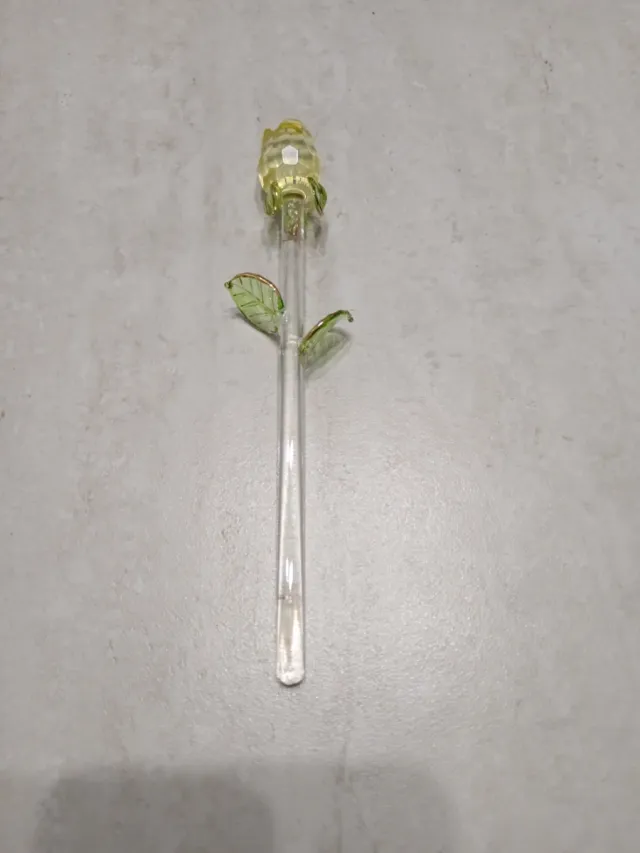 Deliziosa rosa in vetro, perfetta come oggetto decorativo. - Fiori gialli e foglie verdi. - Stelo trasparente.