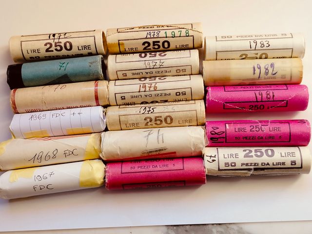 Dettagli del prodotto17 rotolini di monete da lire 5 per un tutale di 850 monete tutte in FDC anni consecutivi: