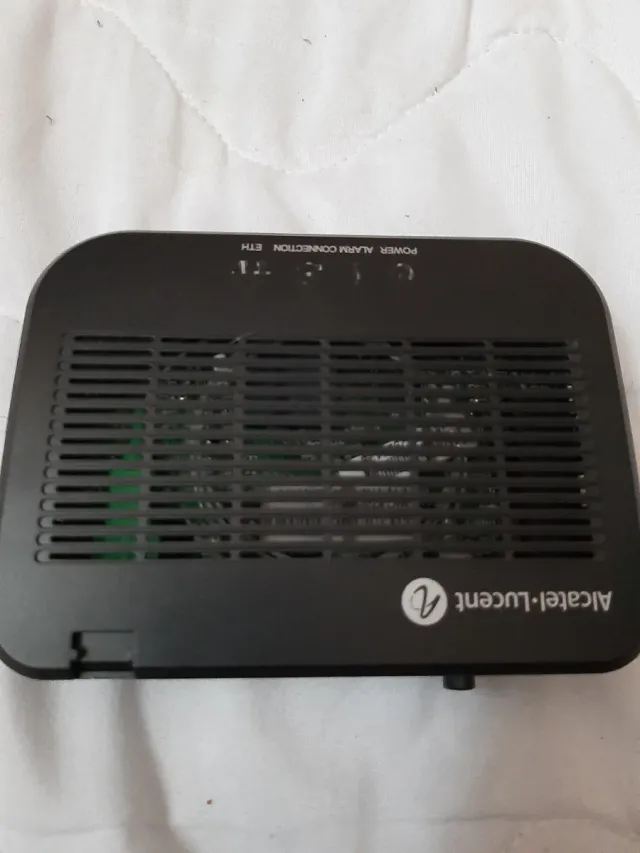 Dettagli del prodottoRouter Alcatel-Lucent in colore nero. - Indicatori LED per Power, Alarm, Connection ed ETH. - Design con griglia di ventilazione. La descrizione è stata tradotta automaticamente.