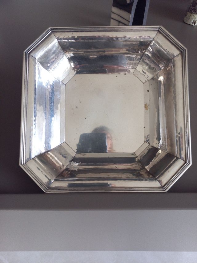 Dettagli del prodottoCiotola in silver plate fatta a mano, effetto martellato sui lati, cm 16x16 h. Cm 4,5