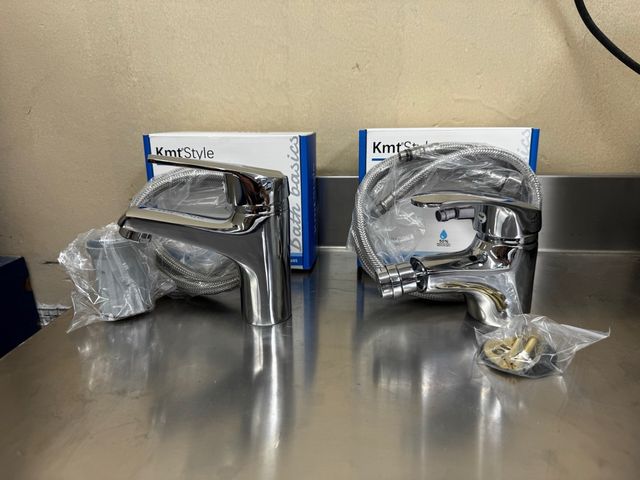 Rubinetto lavabo + rubinetto bidet in acciaio