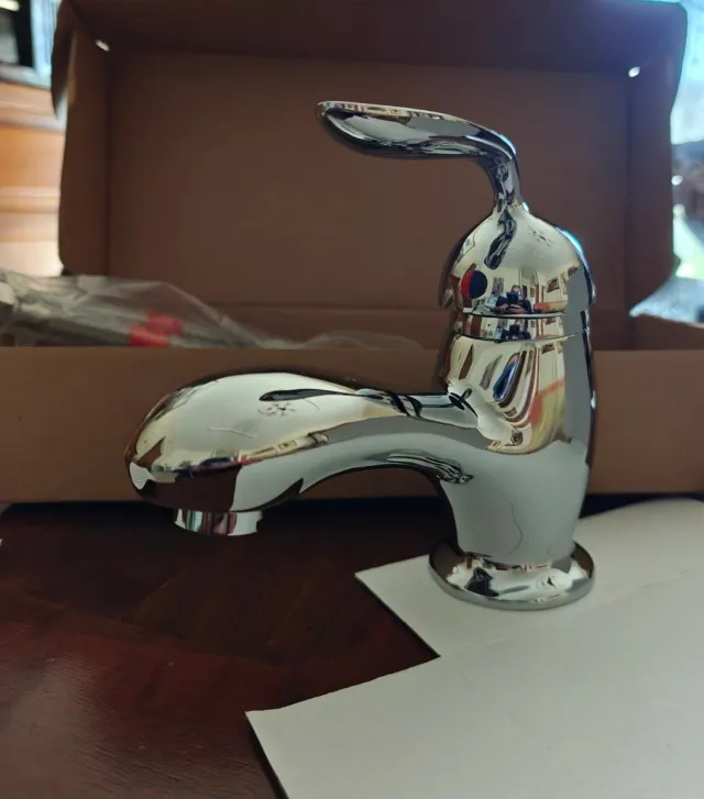 Rubinetto per lavabo, nuovo e mai utilizzato. Design moderno e finitura lucida.