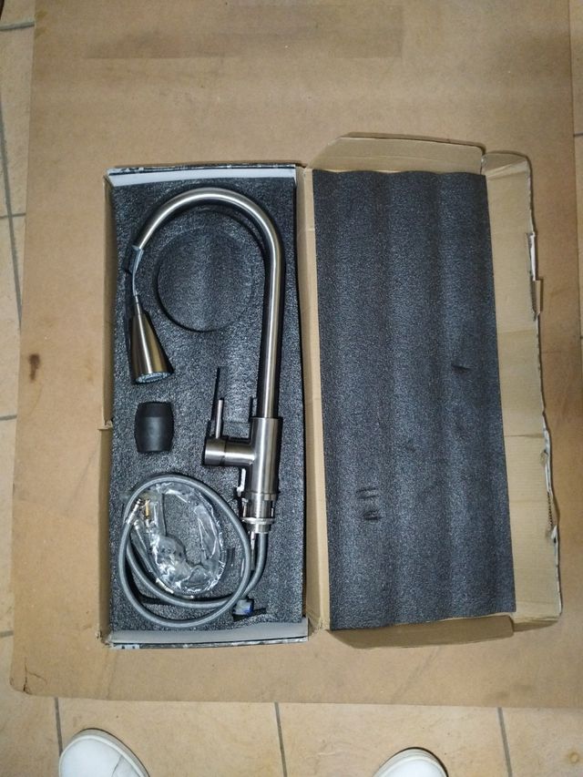 Dettagli del prodottoNuovo miscelatore lavello con doccetta estraibile nella sua confezione, acquistato e mai montato.adatto per lavelli cucina e lavapanni per lavanderie.Finitura Acciaio satinato
