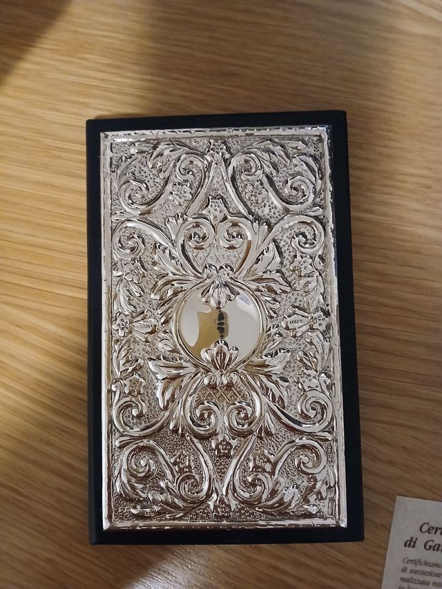 Dettagli del prodottoRubrica telefonica marca Valenti con lastra d'argento davanti; colore nero; dimensioni 13.5 × 8.5 cm circa; con certificato di garanzia; nuova mai usata; in scatola originale;