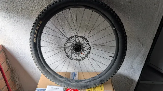 Dettagli del prodottoRuota anteriore da 29 pollici per bicicletta da montagna, marca Giant. Rimossa da una bici Giant. Per asse passante da 15 mm. - Cerchio in alluminio. - Mozzo per freno a disco. - Razze in acciaio. - Disco da 200mm incluso. - Pneumatico Maxxis incluso. La descrizione è stata tradotta automaticamente.