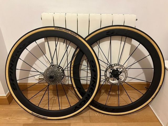 Dettagli del prodottoVendo un set di ruote Spinergy da 47 mm, pronte per il tubeless anche se le porto con tubi. Con nucleo Shimano compatibile con 11 e 12 velocità. Usati per 10 mesi, non hanno un solo colpo e sono come nuovi. Li vendo per comprarne altri con un profilo più alto.