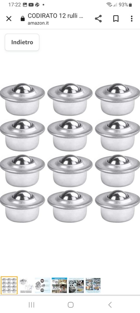 CODIRATO 12 rulli a sfera, in acciaio inox, base universale in metallo, cuscinetti a sfera montati