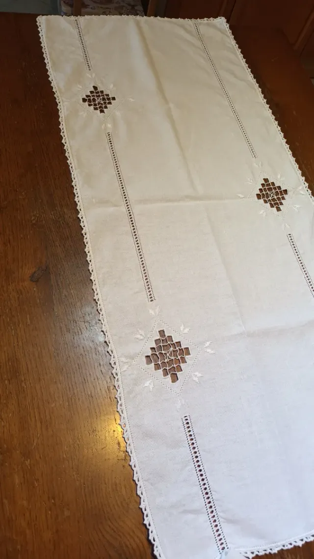 Runner lino ricamato a mano