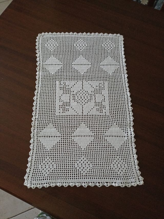 Fatto a mano all'uncinetto, bianco, in cotone.