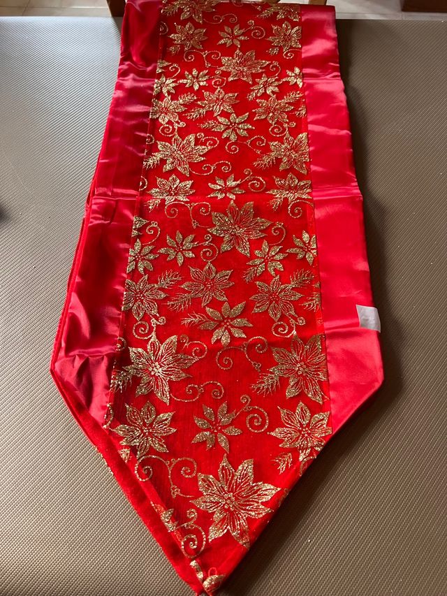 Bellissimo ed elegente Runner rosso e oro da mettere sopra alla tovaglia largo 36 cm lungo 180. Ideale per tavolate di Natale capodanno e festività