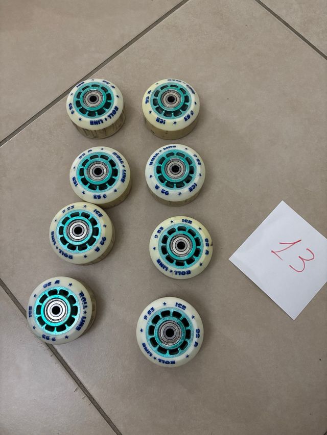 Dettagli del prodottoVendo ruote per pattini a rotelle roll line ice 92 diametro 63 complete di cuscinetti. Ottime per solo dance, coppia, gruppi e quartetti.