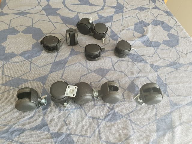 11 ruote indipendenti , girano a 360° 2 modelli diversi 5 pezzi + 6 pezzi 1 modello (quello da 6 pezzi) ha anche freno/blocco