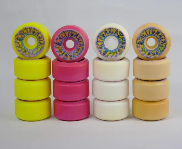 Dettagli del prodottoSet di ruote da skateboard vintage California Pro, NOS (New Old Stock).