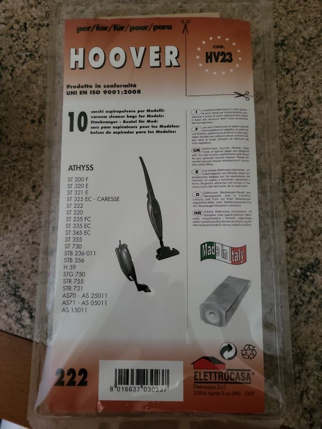 confezione di sacchetti per aspirapolvere Hoover HV 23. Ne manca uno, sono 9