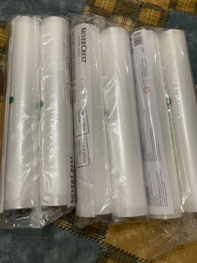Sacchetti per sottovuoto alimentare 3 confezioni sigillate con due rotoli ogni una. Nuove mai aperte