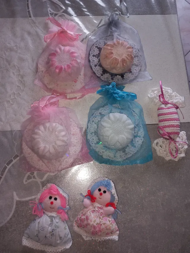 Dettagli del prodottoDeliziosi sacchetti contenenti gessetti profumati, realizzati a mano con cura.
