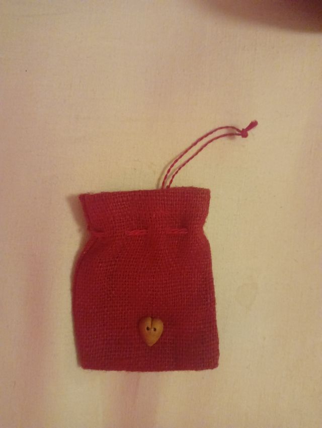 Piccolo sacchetto di juta rosso con cuore