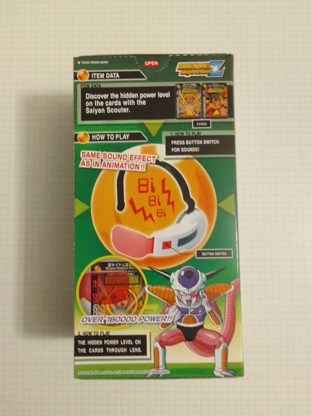 Dettagli del prodottoSaiyan Scouter prodotto da Bandai con effetto acustico e lenti red rossi con cui leggere forza dei personaggi delle due cards incluse. Prodotto nuovo sigillato nella sua confezione illustrata a colori. Si invia in omaggio questo prodotto ad acquirente che compra a prezzo pieno toys da collezione per un importo di 100 €.
