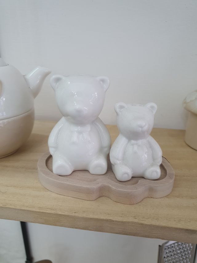 orsetti sale e pepe in ceramica con base in legno, rappresentato mamma e figlio base 11 cm × 8 altezza orsetto grande