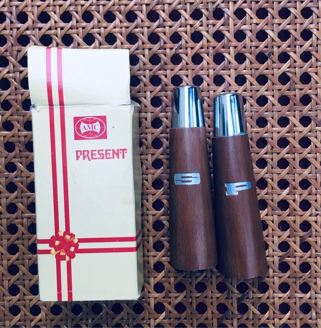 sale pepe cadeau pentole AMC 1970 legno metallo con scatola regalo nuovo