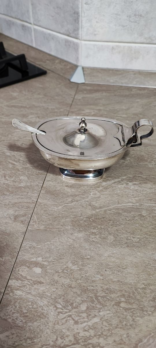 Salsiera in argento 800 completa di ciotolina interna e cucchiaino, come nuova Euro 50,00
