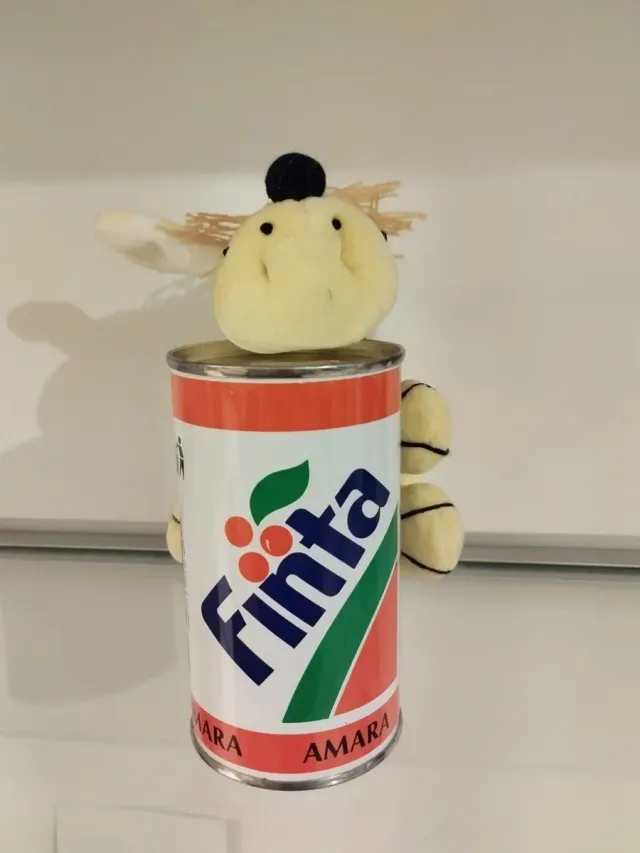 Salvadanaio a forma di lattina Finta (Fanta) - Design colorato con logo Finta. - Anni 90 vintage