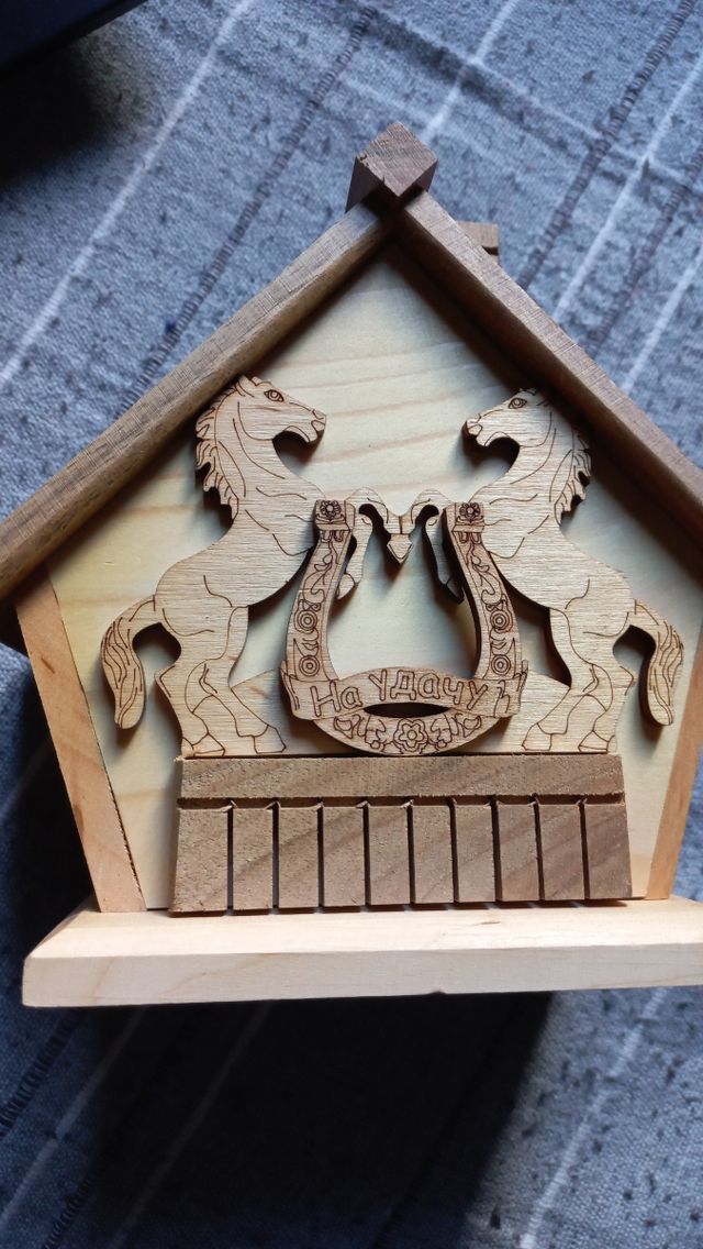 salvadanaio in legno, a forma casetta. Apertura a vite sul fondo Misure 15x15 cm