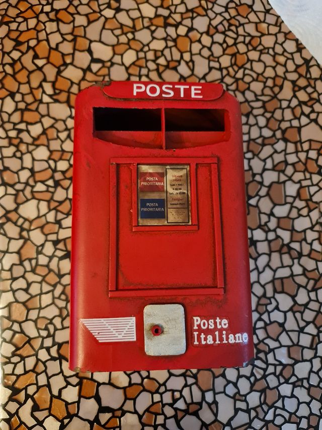 Salvadanaio con buco sotto apribile. Ricopia la buca delle lettere delle poste italiane. Con effetto invecchiato e verniciato ai lati. Misure 18x11x7
