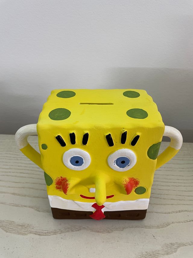 Salvadanaio Spongebob in terracotta dipinta a mano, altezza circa 25 cm