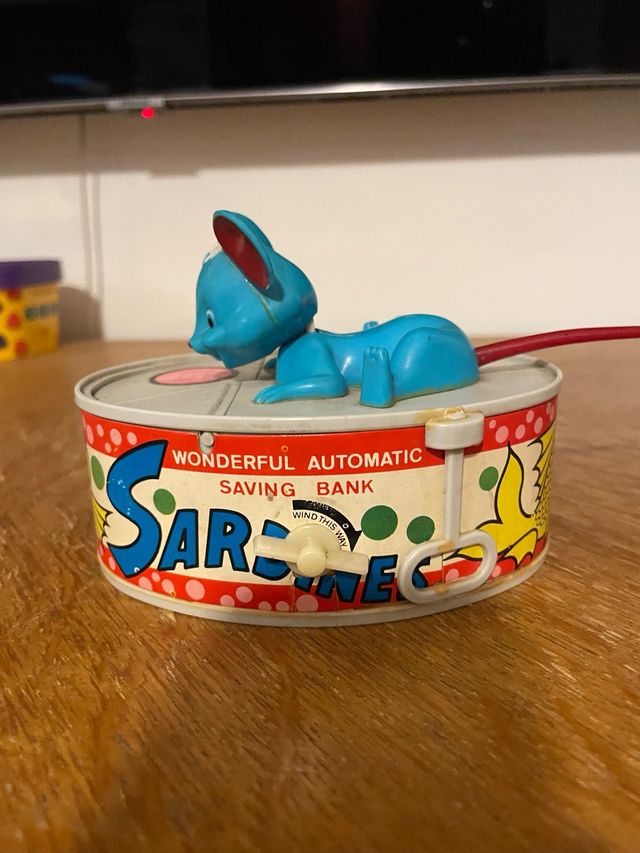 SALVADANAIO VINTAGE SARDINES WIND UP TOPO BANK