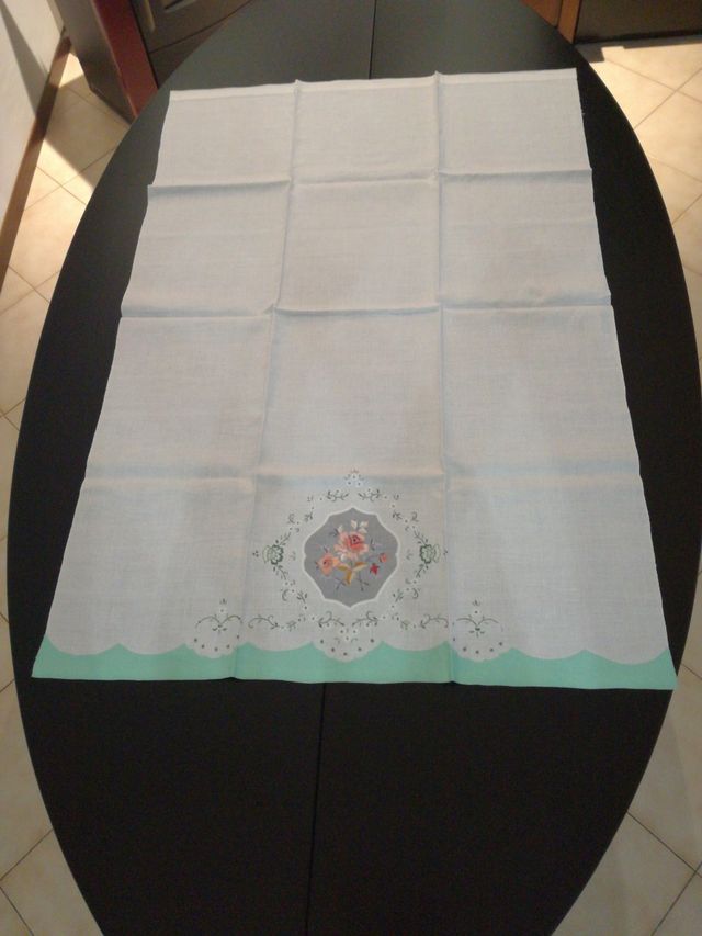 tre salviette antiche in cotone finissimo ricamate a mano. Larghezza cm. 73 Altezza cm. 110 Vendesi anche singolarmente