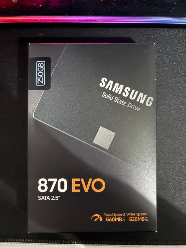 Dettagli del prodottoVendo Samsung 870 EVO da 250GB, uno degli SSD SATA più affidabili e popolari sul mercato. Perfetto per dare nuova vita a PC e laptop, migliorando drasticamente tempi di avvio, caricamento programmi e prestazioni generali.