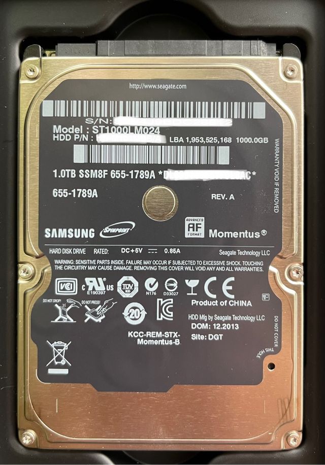 Disco rigido Samsung Seagate modello ST1000LM024 capacità 1 terabyte, vedi specifiche in foto, funziona perfettamente, vendo per aumento prestazioni.