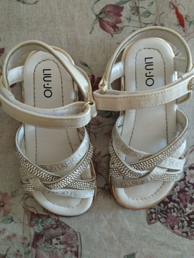 Dettagli del prodottoSandali gioiello Lui Jo per bambina, perfetti per occasioni speciali. Sono color oro chiaro e presentano delle delicate applicazioni di glitter.