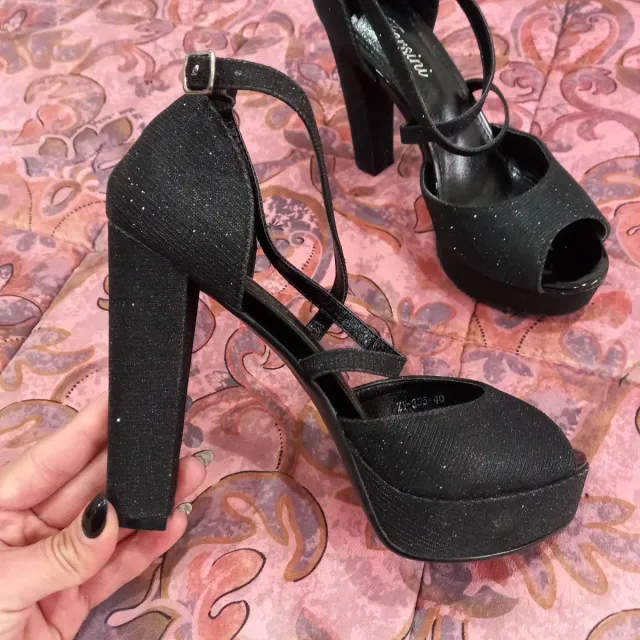 Sandali neri glitter tacco largo plateau 40