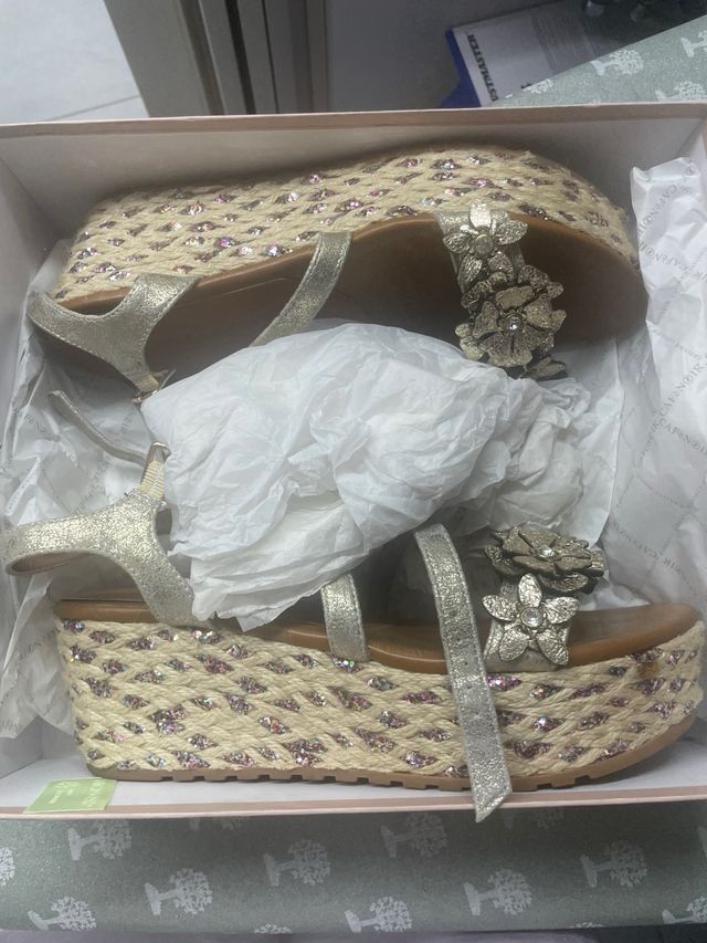Sandali Zeppa Beige Argento
