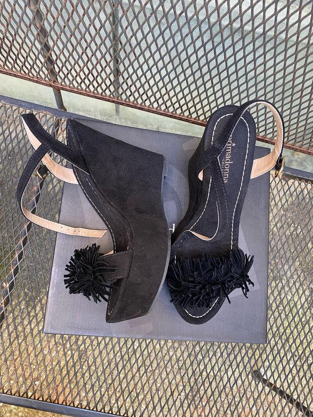 Sandali Zeppa Primadonna Neri Pompon Tg 38