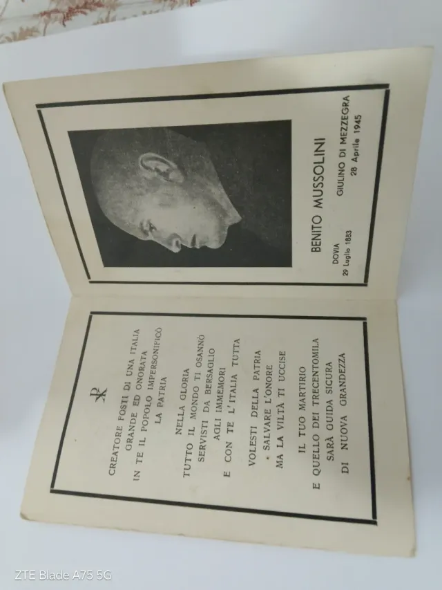Santino originale Benito Mussolini 1945