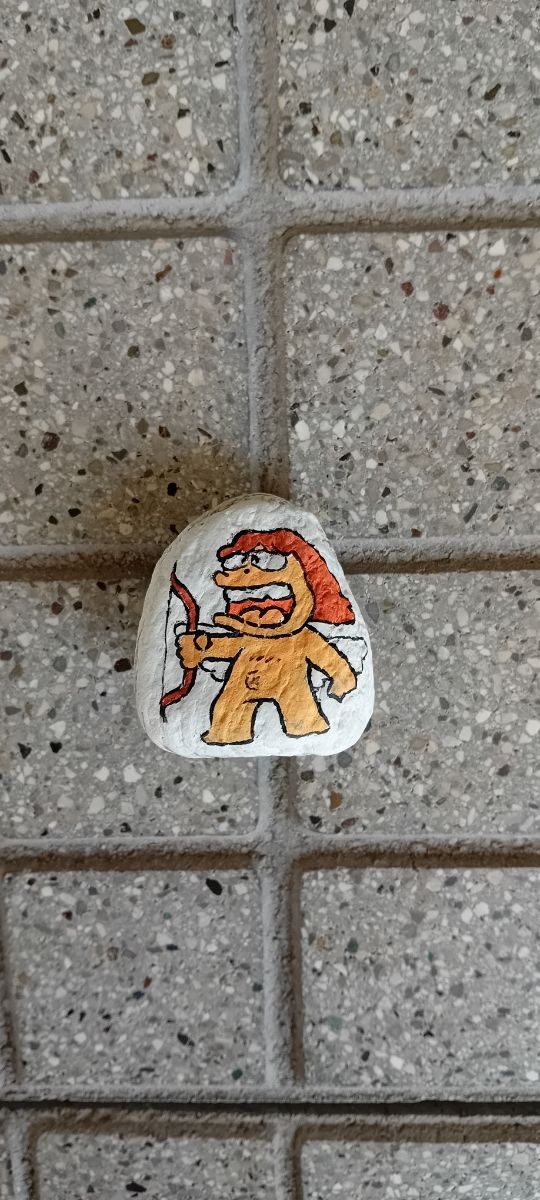 Sasso decorato a mano con un disegno di Cupido. - Dipinto su sasso bianco. - Raffigura Cupido con arco e frecce. - Dettagli colorati.