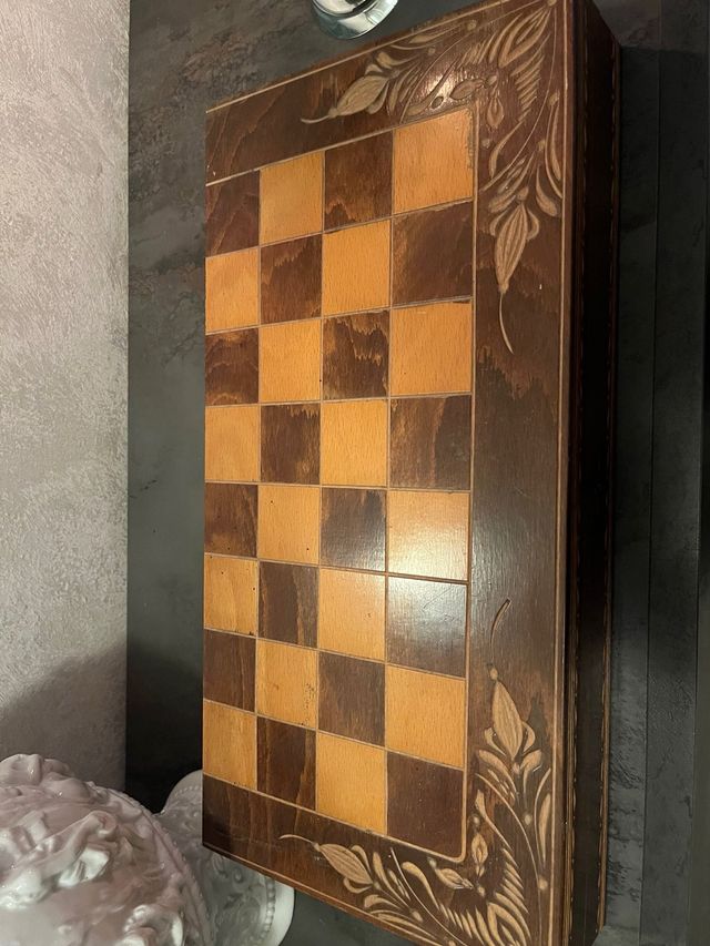 Scacchiera e Dama in Legno Intarsiato