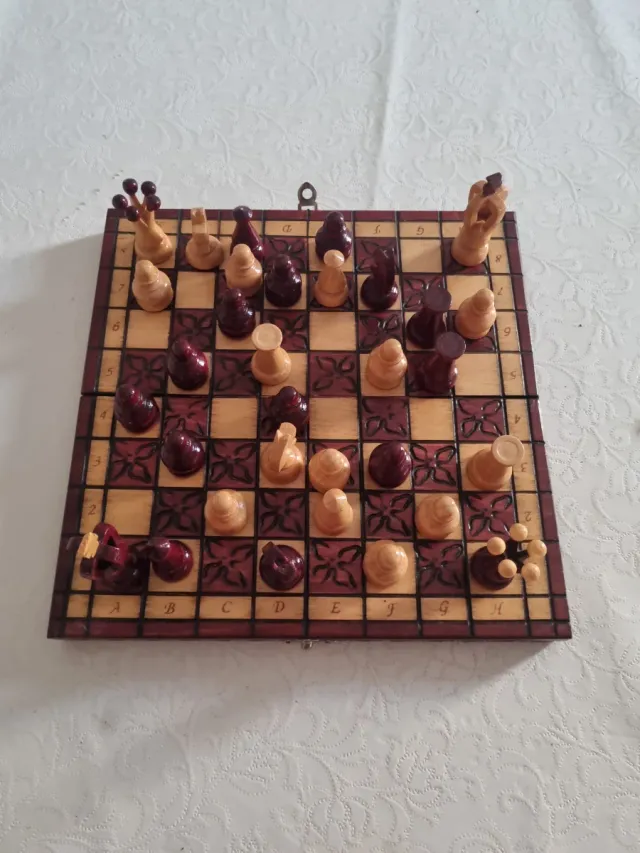 Dettagli del prodottoScacchiera in legno, un pezzo originale degli anni 2000. Perfetta per gli appassionati di scacchi.