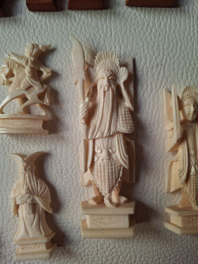 - 32 pezzi intagliati a mano in bosso e altro materiale pregiato