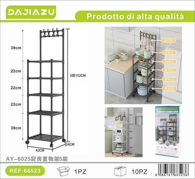 Scaffale da Cucina 5 Ripiani DAJIAZU