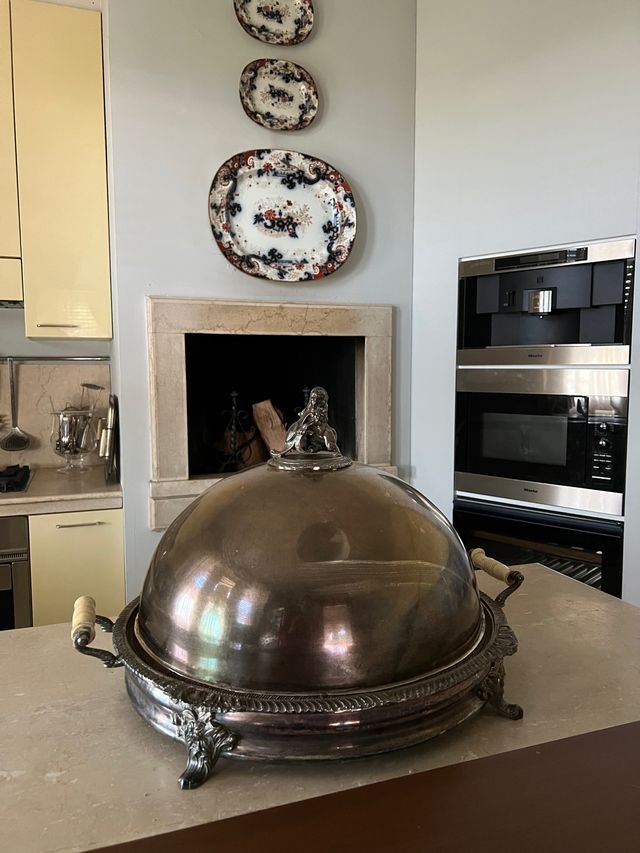 Dettagli del prodottoScalda vivande Sheffield Grande cupola con Leone scultura e due manici da restaurare e