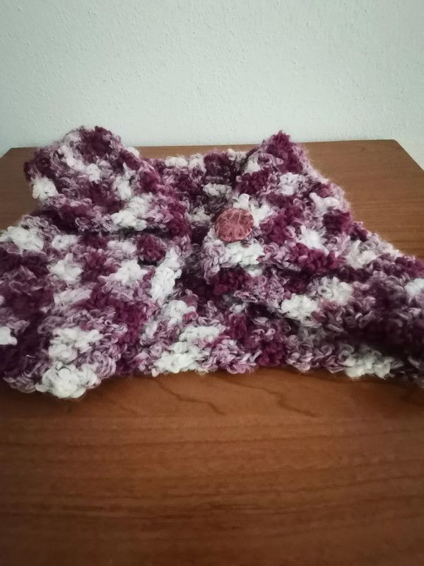 Scaldacollo da donna, in lana boucle, con risvolto e chiusura con bottone circonferenza cm.50,altezza cm.20