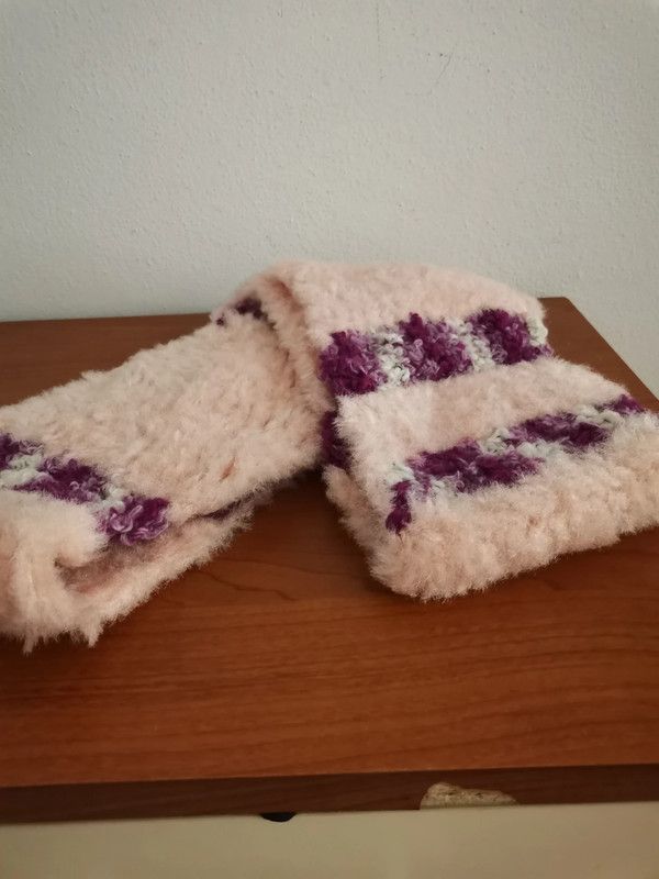 Scaldacollo donna, a fascia, in lana boucle, possibilità di doppio giro, circonferenza cm.126, altezza cm.16, colore rosa molto tenue.