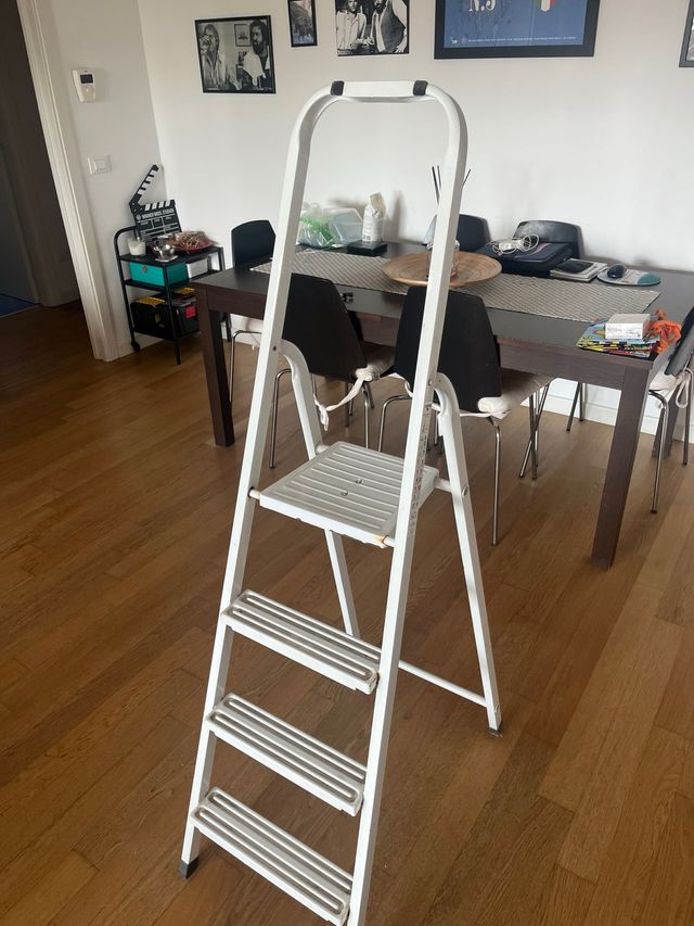 Scaletto in ferro bianco, utile per raggiungere punti più alti in casa o in garage. - Struttura in ferro verniciato. - Gradini antiscivolo. - Altezza 85 cm