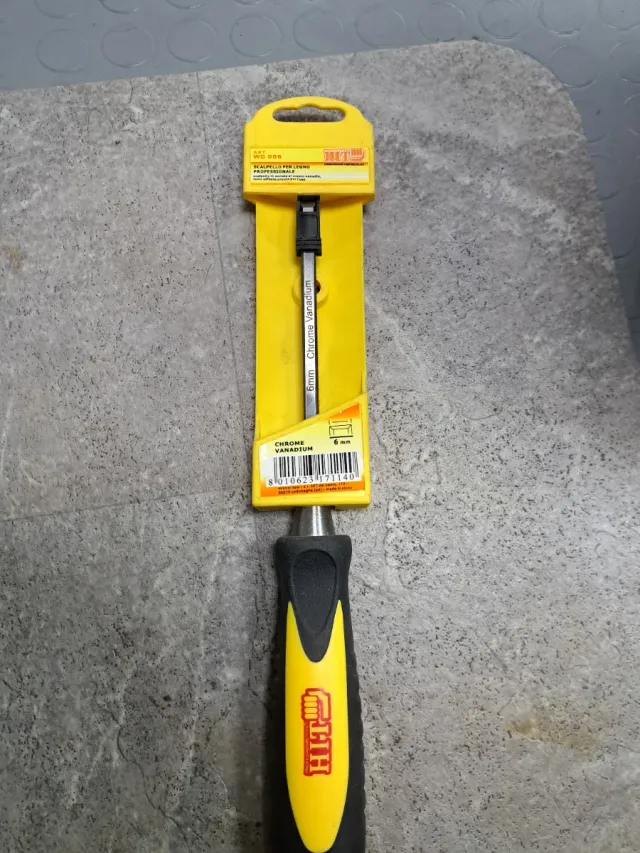 Scalpello per legno professionale HIT. - Lama in Chrome Vanadium da 6mm. - Manico ergonomico bicolore.