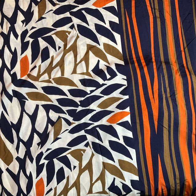 Scampolo di viscosa elasticizzata con una fantasia vivace. - Tessuto morbido e confortevole. - Motivo astratto con foglie e righe - cm 170 x 160