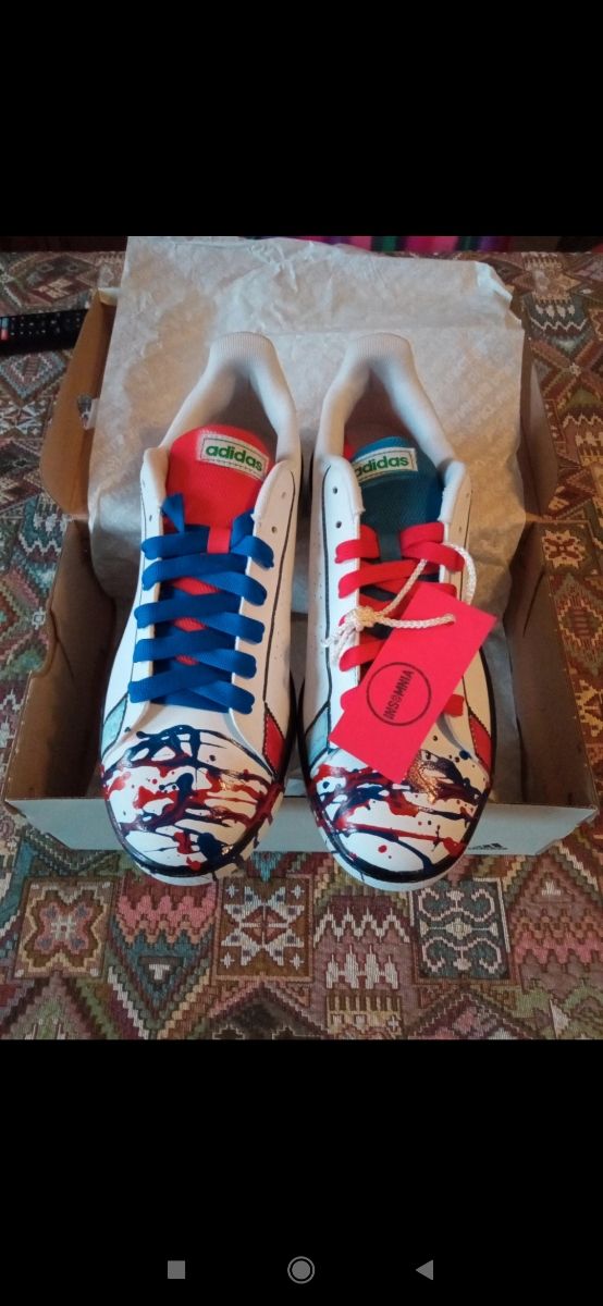 Scarpe Adidas castomizzate a mano con certificato artistico, modello Crevalcore, da uomo mai usato, numero 44